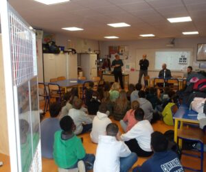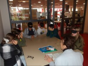 Le jeudi 6 novembre, c’était le jour de « non harcèlement ». Des personnes de l’association Valentin Hauy sont venues au collège de 9h30 à 11h30. C’est une association qui aide les aveugles et les malvoyants. On a fait des 5 ateliers, dans le premier atelier, on a testé une machine qui zoome sur les textes pour pouvoir mieux lire. Dans le 2ème atelier, Déborah nous a appris la langue des signes. Dans le 3ème atelier, on s’est bandés les yeux pour se servir un goûter. Dans le 4ème atelier, on avait les yeux bandés pour essayer de mémoriser des textes et c’est difficile. Dans le 5ème atelier, on a joué au foot avec les yeux bandés et avec un ballon qui fait du bruit. On a trouvé ça très intéressant. Pour finir, à midi il y avait un petit spectacle en langue des signes : la chanson l’effet de masse : « L’effet de masse brise l’esprit ».